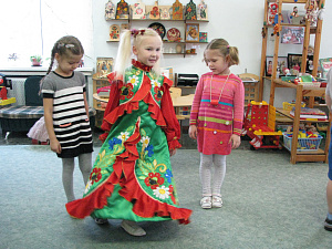 Используем игровую комнату или кабинет педагога-психолога. Понадобится ковёр, желательно костюмы или какие-либо атрибуты для игровых персонажей — Мудрого Ворона и царевны Марьюшки, большой воздушный шар, зеркало.