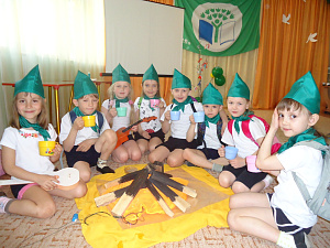 Ребята! Наше путешествие подходит к концу и нам пора возвращаться в детский сад. Перед уходом воспитатель обращает внимание детей на то, что необходимо затушить костёр. (Дети с помощью песка тушат костер и проходят на корабль.)