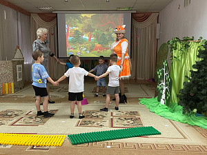 Ведущий: Ребята, мы поможем дедушке и бабушке? (Да.) Но для этого нам нужно отправиться в сказку. Вы готовы? Вставайте скорее в круг и говорите волшебные слова.