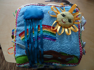 Цель: развитие зрительного восприятия, внимания, активизация речи, развитие тактильной чувствительности и мелкой моторики рук, формирование навыков самообслуживания: расстёгивание и застёгивание молнии, замков, кнопок, завязывание и развязывание шнурков.