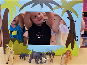 Дошкольники с большим удовольствием играют с деревянными и пластмассовыми фигурками животных. Они имеют возможность узнать животное с помощью осязания, соотнести звуки голосов животных с их зрительно воспринимаемыми образами. В режиссёрской игре «Зоопарк» дети-экскурсоводы ухаживают за животными леса и саванны, рассказывают о них детям-посетителям.