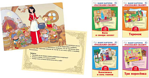 Первым делом важно научить ребёнка любить сказки. Именно с них берёт своё начало обучение технике пересказа. Конечно, книгу с красочными иллюстрациями никто не отменял, но есть и дополнительные материалы, с помощью которых процесс пересказывания сказок становится более интересным и продуктивным. Когда ребёнок пересказывает сказки он обогащает свой активный словарь, учиться грамотно строить предложения, как простые, так и сложные, согласовывать различные части речи между собой, склонять и спрягать слова и так далее. Но самое главное, это то, что ребёнок удерживает последовательность событий и может её воспроизвести, а значит проблем с сочинением в дальнейшем тоже не должно возникнуть. Бонусом к сказкам идёт психологическая оценка героев и их поступков, что позволяет одновременно решить задачи нравственного воспитания. Дети любят играть, поэтому для этих целей прекрасно подойдут всевозможные КУБИКИ С ИЛЛЮСТРАЦИЯМИ К СКАЗКАМ: «Вспомни сказку», «Собери сказку», «Угадай сказку», «Узнай сказку», по которым после того, как ребёнок её собрал, можно вспомнить всю сказку целиком и пересказать ещё раз. Или НАБОРЫ КАРТОЧЕК «РАССКАЖИ СКАЗКУ»: «Волк и семеро козлят», «Теремок», «Три поросёнка» и так далее - с иллюстрациями к сказкам, где вся сказка изображена с самого начала и до конца. С такими наборами можно создавать полноценные постановки, где вместо действий персонажей или кадров фильма будут картинки.