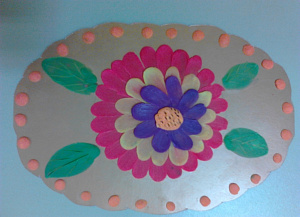 4. Отступив от края лепестка, делаем второй ряд налепов горошин пластилина другого цвета.