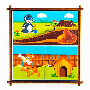 Игра пазлы-пара изготовлена из дерева – экологически чистого и гипоаллергенного материала. Развивает мелкую моторику, логику и речь, активизирует мозговую деятельность и расширяет кругозор. Предложите ребёнку достать из коробочки пазлы, разобрать их. Чем меньше ребёнок и чем сложнее ему будет выполнить задание, тем меньше пазлов выкладывайте перед ним одновременно. Начните с четырёх пазлов (двух пар), затем усложняйте задания. Начиная игру покажите, как пазлы собраны, можно разделить их и попросить ребёнка вернуть всё на место. Перемешивайте пазлы между собой и предлагайте малышу найти для каждого животного свой дом. Подбирая пары и выполняя задания, проговаривайте ваши действия и получившиеся пары, где чей дом. Начинайте со знакомых ребёнку персонажей. Если малыш совсем кроха, попробуйте сначала познакомить его с картинкой пазла и сами соберите его на глазах у малыша, так проделывайте несколько раз, пока малыш не захочет вам помочь, кстати о помощи стоит попросить.
