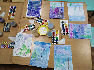 Родители с детьми совместно раскрашивали различными средствами рисования картины-иллюстрации к сказкам.