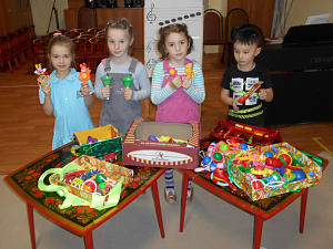Дети: Слышно балалайку, свистульки, трещотки. Играет оркестр народных инструментов. (Звучит песня «Мама», муз. Ю. Чичкова; дети слушают.)