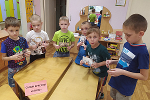 Для подготовки к таким занятиям мы проводим разнообразные виртуальные экскурсии, игры-превращения, игры-импровизации, игровые ситуации, погружая детей в различные эмоциональные состояния, организуем дидактические игры, экспериментирование, моделирование, продуктивную деятельность; с родителями наши воспитанники посещают объекты социальной и производственной сферы (в данном случае – парикмахерскую).