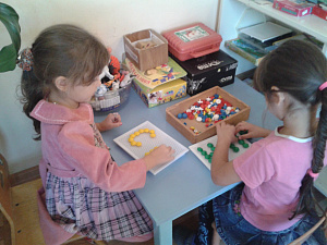 - Составление из мозаики, различных видов конструктора, шнуровки.
