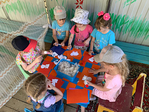 Цель: формирование знаний детей о свойствах тополиного пуха и освоение способов работы с ними.