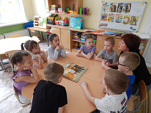 (Рассматривание иллюстрации к сказке «У солнышка в гостях» по вопросам.)Педагог: Кто изображён на картинке? Из какой сказки эти персонажи? О чём сказка? (Ответы детей.)