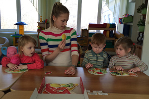 Далее воспитатель предлагает детям рассмотреть матрёшек и выстроить их по росту. Того, кто справился с этим заданием, матрёшки просят подобрать им подружек по росту. Примеряя матрёшек друг к другу, дети составляют пары одинакового роста, потом матрёшки просят есть и пить, побуждая детей выбрать необходимую для этого посуду соответствующего размера.