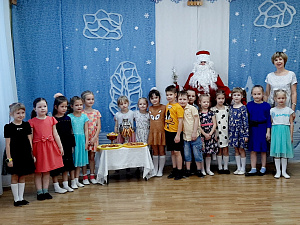 Дед Мороз: Ребята, я вам тоже сюрприз приготовил. Закрывайте-ка глаза! (Дед Мороз вносит в круг небольшую украшенную ёлочку.) Открывайте глаза! Эту ёлку вам принёс добрый Дед Мороз. Готовьтесь к новогоднему празднику, водите возле неё хороводы, пойте и пляшите. А к празднику я вам большую ёлку привезу.