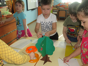 Воспитатель: Пора возвращаться на землю в наш детский сад. Но я предлагаю посадить у инопланетян дерево. Но дерево это непростое – это «Дерево волшебных слов». Когда мы будем называть «волшебное слово», то на дереве будет распускаться цветок. (Дети называют «волшебные слова», приклеивают на заготовку дерева цветы и прощаются с инопланетянами.)