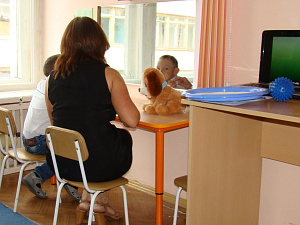 Логопед: Артём, сегодня мы с тобой поупражняемся в произнесении звука [Р]. Для этого мы отправимся в гости. А у кого мы побываем, ты узнаешь, если сдуешь песок с картинки. (Педагог и ребёнок проходят за стол. Перед ребёнком находится песочница. В песке зарыта картинка с изображением собаки.)