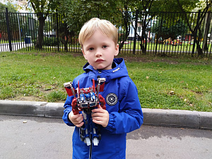 Случилось это, как и у многих, после семейного просмотра одноимённого блокбастера. Основной персонаж и бессменный лидер автоботов – Оптимус Прайм, так впечатлил его своей силой и мощью, что теперь он практически не расстаётся с игрушкой – берёт с собой в детский сад, в гости к бабушкам, на прогулку, и, конечно же, играет с ним дома долгими вечерами.