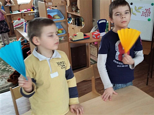 Воспитатель: Ребята, этот невидимка есть в доме и на улице, никто его не видит, но все ощущают. И всем он очень нужен. (С помощью наводящих вопросов дети с ЗПР называют воздух. По предложению педагога они машут листами картона, чтобы почувствовать движение воздуха, и делятся впечатлениями.)