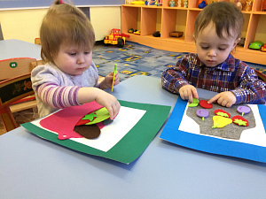 Игры с пособием помогают детям овладеть действиями, которые совершаются с изображаемыми реальными предметами. Мы используем не только рисунки на бумаге, раздаточный материал с картинками на плотном картоне, но и выполненные из разноцветного фетра фрукты, овощи, ягоды. Для поддержания мотивации детей в ходе игры и организации сюрпризных моментов предусмотрены также корзинка, волшебный мешочек, солнышко из фетра и шерстяных ниток.