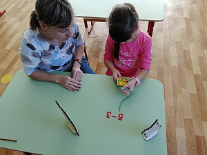 Как усложнение, просим ребёнка самого придумать задание для взрослого и сказочного героя, а потом проверить результат. Сначала у ребёнка под рукой планшет в помощь, затем по памяти и воображению. В дальнейшем взрослый самоустраняется, давая возможность детям взаимодействовать друг с другом в игре со «Шнуром-малышом». Эта игра развивает у ребёнка внимание, мышление, память, воображение, умение ориентироваться в микро-пространстве.