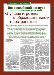 Всероссийский конкурс для образовательных учреждений «Лучшая игротека в образовательном пространстве»
