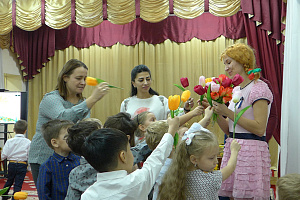 Пеппи: Мне очень нравится быть вместе с вами и с вашими мамами. Так весело, так уютно, радостно. Теперь я понимаю, как это хорошо, когда есть мама, которая дарит тебе всю свою любовь! Дорогие мамы, приглашаю вас ещё немного поиграть. (Фонограмма № 6. Музыкальная игра «Найди свой цветок» Участвуют три мамы или бабушки и три группы детей по 4-5 человек. Первой маме Ведущая даёт красный тюльпан, второй — розовый, третьей — белый (цветы искусственные). Дети также получают цветы и танцуют, двигаясь по залу. При встрече друг с другом они с лёгким поклоном меняются цветами. По окончании музыки взрослые поднимают цветы вверх, а дети с такими же цветами собираются вокруг них. Та команда, которая встала в круг быстрее, побеждает. После игры все садятся на свои места.)