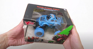 Хорошая проходимая инерционная машина, с металлическим корпусом, яркая и стильная. Передние колёса подвижные, поворачиваются вправо-влево. Модель создана специально для трюков, её можно испытывать на скорость, устраивать гонки с друзьями и проходить ею полосу препятствий. Настоящий монстр на высоких колёсах!