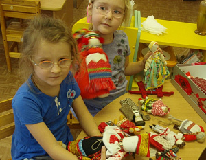 Мы знакомили детей с народными сказками, потешками, песенками, это настолько заинтересовало детей, что они стали просить о том, чтобы вместе шить кукол — персонажей русских народных сказок: ленивицу и рукодельницу (были сшиты на основе традиционных кукол «Барыня» и «Работница»), мачеху и Бабу-Ягу. В таких играх дети учатся общаться друг с другом, согласовывать замысел игры. Это требует от ребёнка владения не только игровыми, но и коммуникативными умениями, создающими общий эмоционально-положительный фон игры.