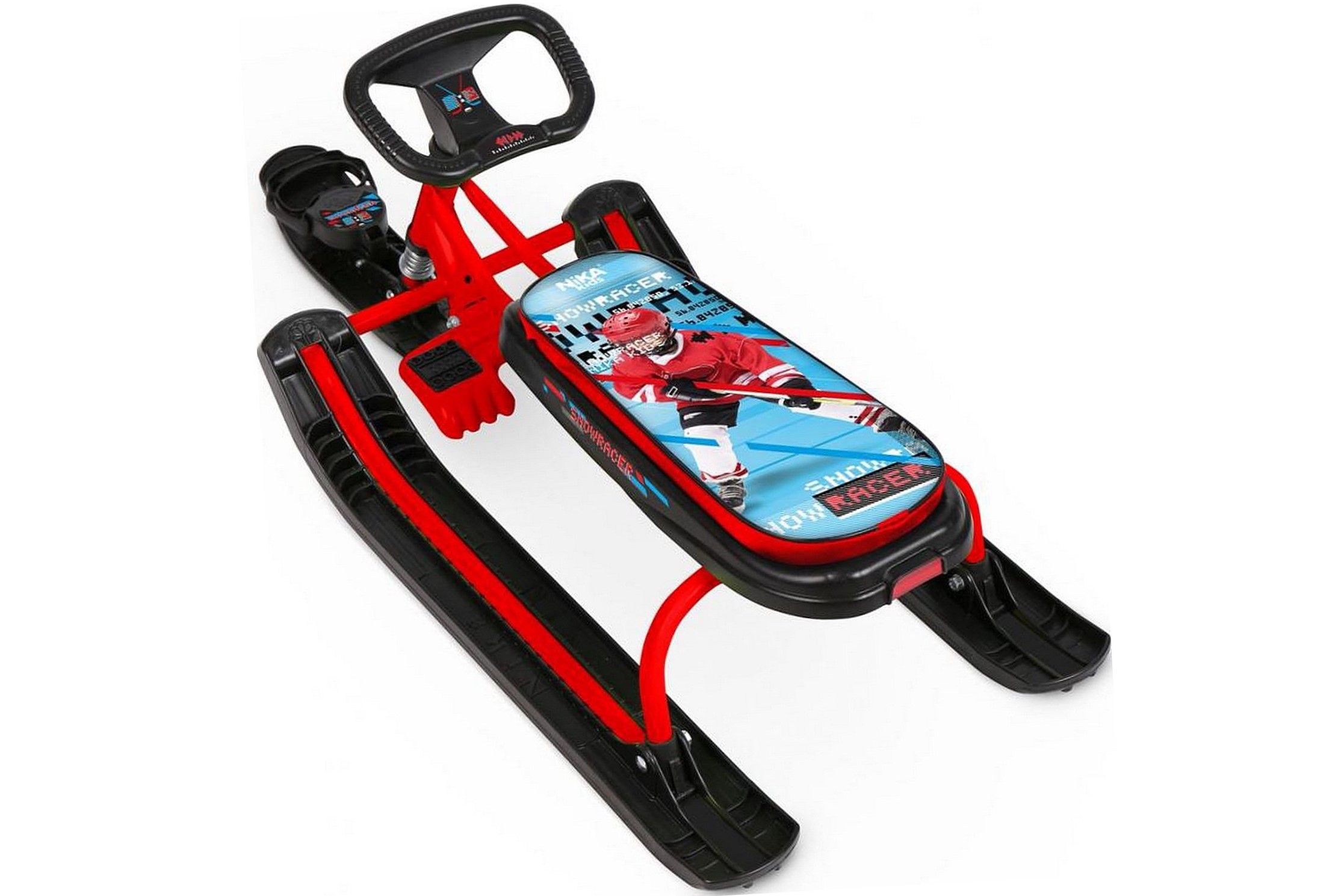 Снегокат Nika – отличный вариант для зимних прогулок и активного отдыха. Он имеет удлиненное мягкое сиденье, буксировочный трос с автоматической намоткой, а его усиленный тормоз эффективен даже на обледенелых поверхностях. На нём можно катать сразу двух детей, модель выдерживает вес до 100 кг.