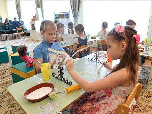 Наш опыт организации изобразительной деятельности дошкольников с ОНР на прозрачных стеклянных мольбертах показал, что такое рисование доступно и интересно для детей, привлекает их возможностью получения новых визуальных впечатлений и тактильных ощущений. Создание на прозрачных мольбертах целостных зрительных образов используем для формирования умений согласованно действовать в паре, преодолевать робость и неуверенность в результате, находить решения при затруднениях воплощения творческого замысла.