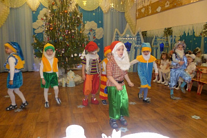(Обычно, при встрече с психологом для приветствия используется ритуал. Например, передача предмета со словами «я рад тебя видеть».)Психолог: Сегодня, дети, мы познакомимся с маленькими волшебными человечками. Этих человечков зовут гномики. Они такие маленькие, как вы. (Воспитатель показывает рукой какую-то высоту от пола.) Бывают и ещё меньше. Покажите мне, какие они маленькие (дети показывают). Ещё у них есть длинная-предлинная борода, покажите мне какая (показывают). На ногах у гномиков деревянные башмачки, которые громко стучат. Как стучат башмачки? (Дети топают ножками.) А на головах у гномиков есть забавные колпачки (достаёт колпачки). Это не простые колпачки, а волшебные, мы оденем колпачки и превратимся в гномиков! (Можно использовать приговорки: «Мы вокруг себя покружились и в маленьких гномиков превратились» или прохождение через «волшебный обруч»). Ещё гномики любят ходить друг за другом, пяточка к носочку. Давайте попробуем, как ходят гномики.