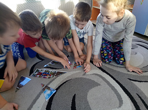 Педагог: Задание для капитанов. И пока капитаны заняты, игроки тоже выполнят задание – игра «Собери картинку» (Картинки разрезаны на несколько частей. Необходимо собрать из частей целое изображение.)