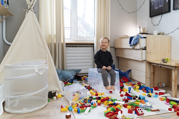 Закрытые ведерки, небольшие контейнеры, коробки — все это понадобится для хранения таких мелких деталей, как пазлы, лего, солдатики, мозаика. Рекомендуется рассортировать их по типу, чтобы малыш быстро нашел то, что ему нужно в данный момент.