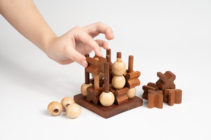 - Улучшение координации движений – сборка деревянных конструкторов-головоломок требует от детей точной координации движений, что способствует развитию мелкой моторики и улучшению координации движений.