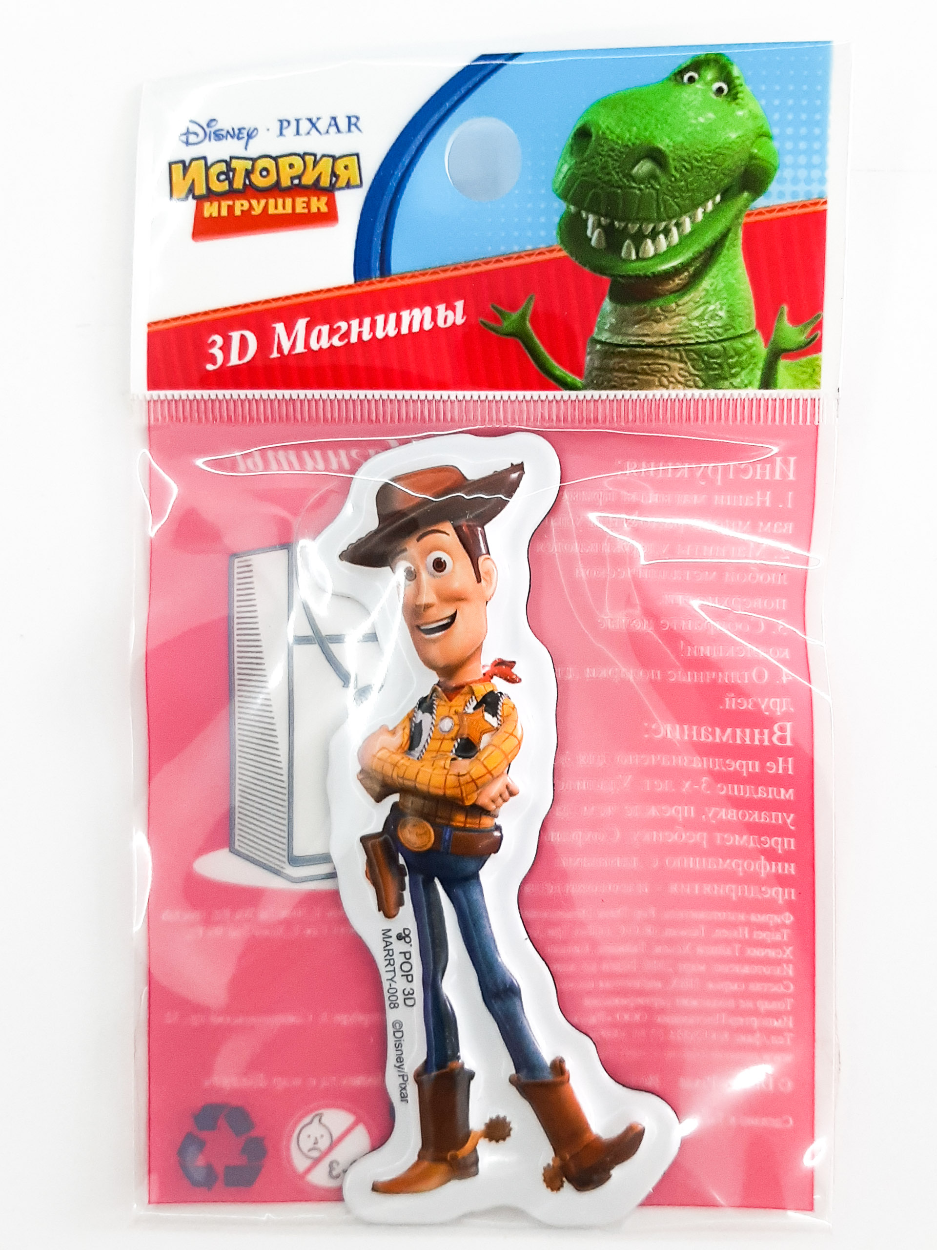 3D магниты, серия «История игрушек» созданы на основании одноимённого полнометражного американского анимационного фильма студии Pixar совместно с компанией Уолта Диснея. Согласно сюжету, игрушки являются одушевлёнными существами, проживающими тайную жизнь, наполненную яркими событиями и незабываемыми приключениями. Серия магнитов состоит из нескольких картинок, каждая из которых рассказывает о герое увлекательной истории. Магниты станут отличным подарком для всех любителей коллекционирования. Среди персонажей можно встретить: Базза Лайтера – многофункционального астрорейнджера, способного излучать лазерные лучи; Мистера Картофельная Голова (пластиковая картофелина со множеством аксессуаров – усы, язык, зубы, кепка, ботинки, уши, руки); Шерифом Вуди – главным героем, способным произносить разные фразы; Рексом – легкомысленным тираннозавром с короткими лапками, переживающим за свою участь в роли игрушки; Свинкой Хэмм (свинья-копилка); Джесси – жизнерадостной, смелой и решительной девушкой-ковбоем, которая перемещается на игрушечном коне Булзай; Пришельцем (игрушка, созданная для игровых автоматов «Планеты Пицца»).