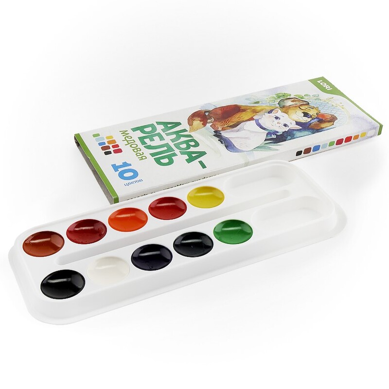 Акварельные краски Lori разных цветов, без кисти, в картонной упаковке.