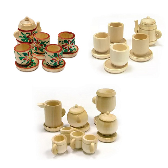 Набор посуды из натуральной древесины представлен в ассортименте.
