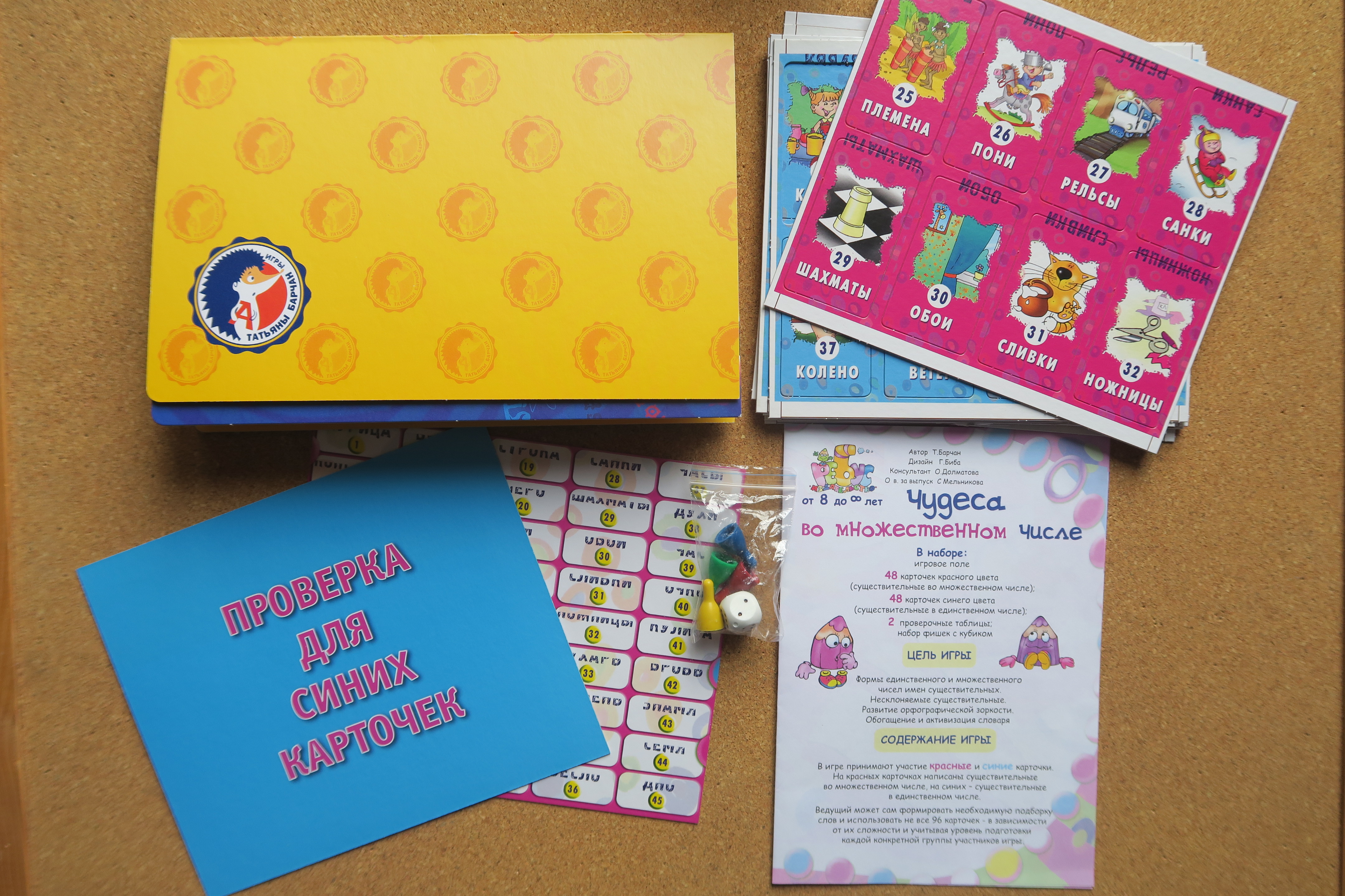 Настольная игра «Чудеса во множественном числе» помогает развитию у ребят познавательной и игровой деятельности, абстрактного мышления. Для опытных участников можно усложнить задания или направить их на изучения определенных склонений и чисел, отобрав для игры нужные карточки. Игровой процесс при этом останется таким же увлекательным, ведь у поля для игры нет ни начала, ни конца – можно играть, пока есть карточки с заданиями. Дети и не догадываются, что в процессе игры получают и углубляют свои знания по грамматике и знакомятся с новыми значениями уже известных слов.