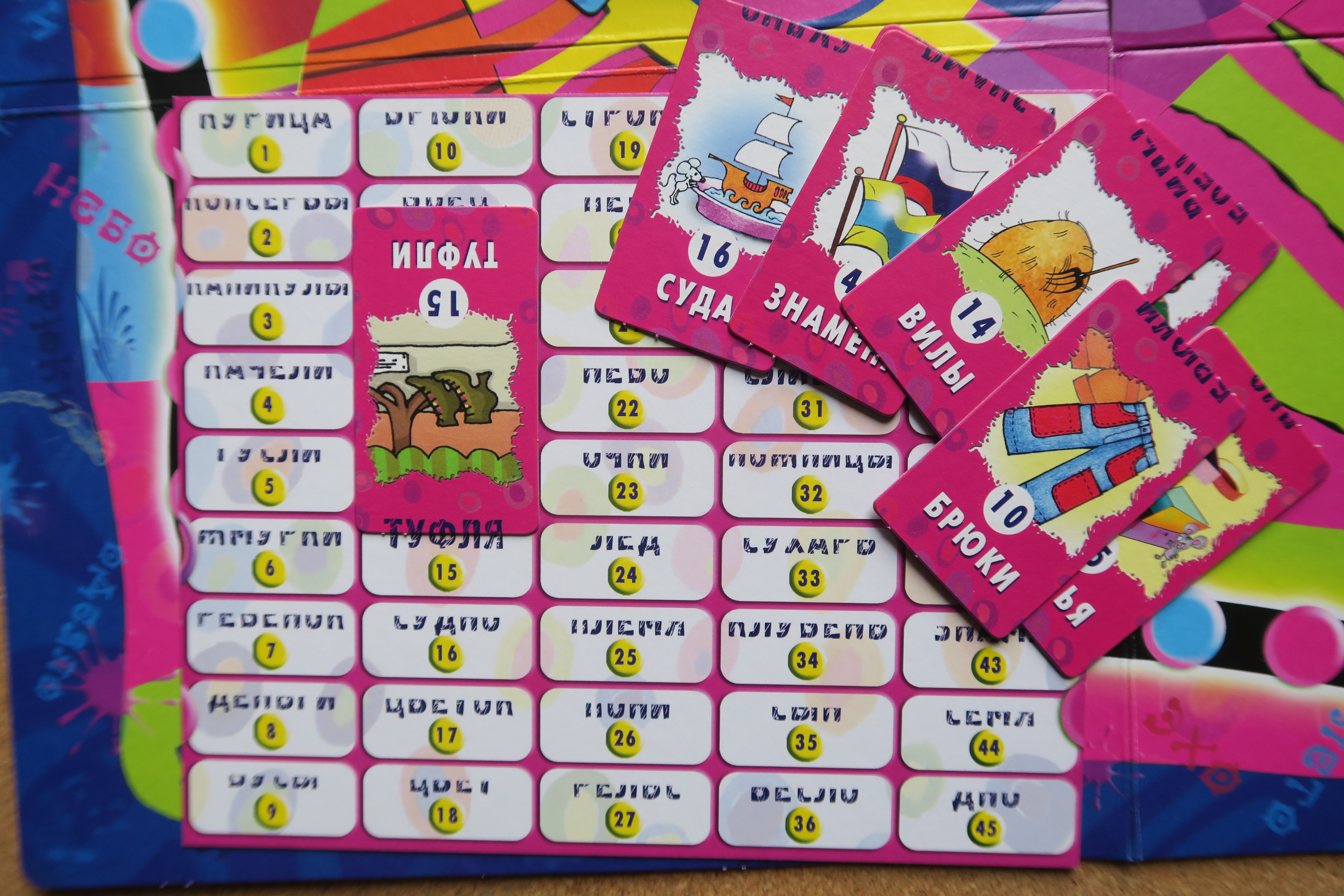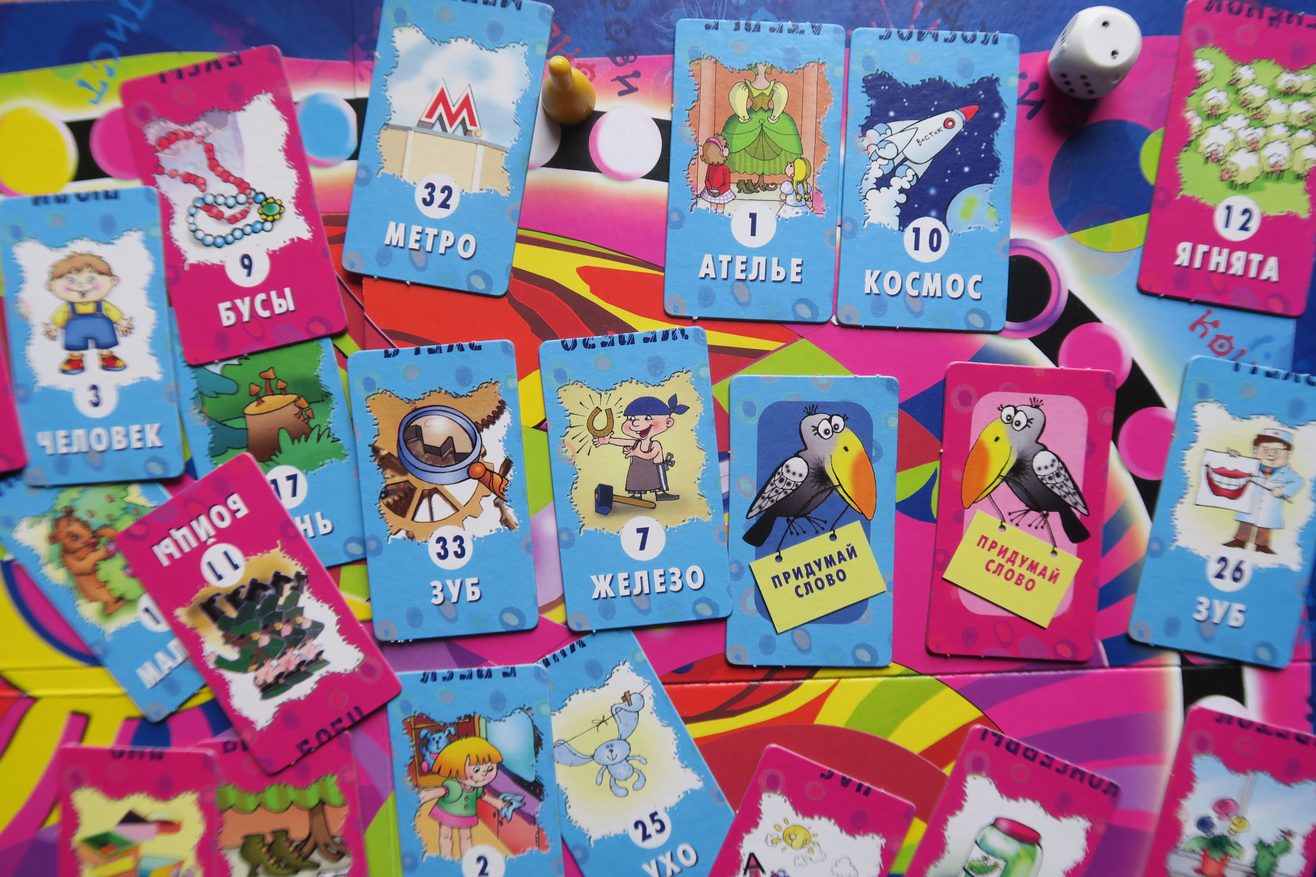 Нам такая игра интересна. Мы даже с помощью карточек тестируем знания родственников. Теперь дети мои знают больше, чем некоторые взрослые-родные. Получается, что за несколько партий дети быстрее выучили слова, чем за год их прохождения в школе. Даже младшая дочка 4-х лет уже выучила многие слова, я за нее читаю, спрашиваю, а она отвечает. Так что у нас получилась отличная полезная игра для детей разного возраста и взрослых. Игра веселая, мы смеемся, если ошибаемся, но зато потом запоминаем слово лучше. Еще нравится, что на карточках есть картинки, так веселее и плюс активируют образную память. Из минусов: большое пустое поле для семейной игры. Кубик слишком дешевый, точки раскрашены не аккуратно. Но в остальном только плюсы, особенно в пользе игры и в помощь детям в обучении в школе. Заметила, что именно информация с игры лучше сохраняется в памяти, чем заучивание по учебнику.