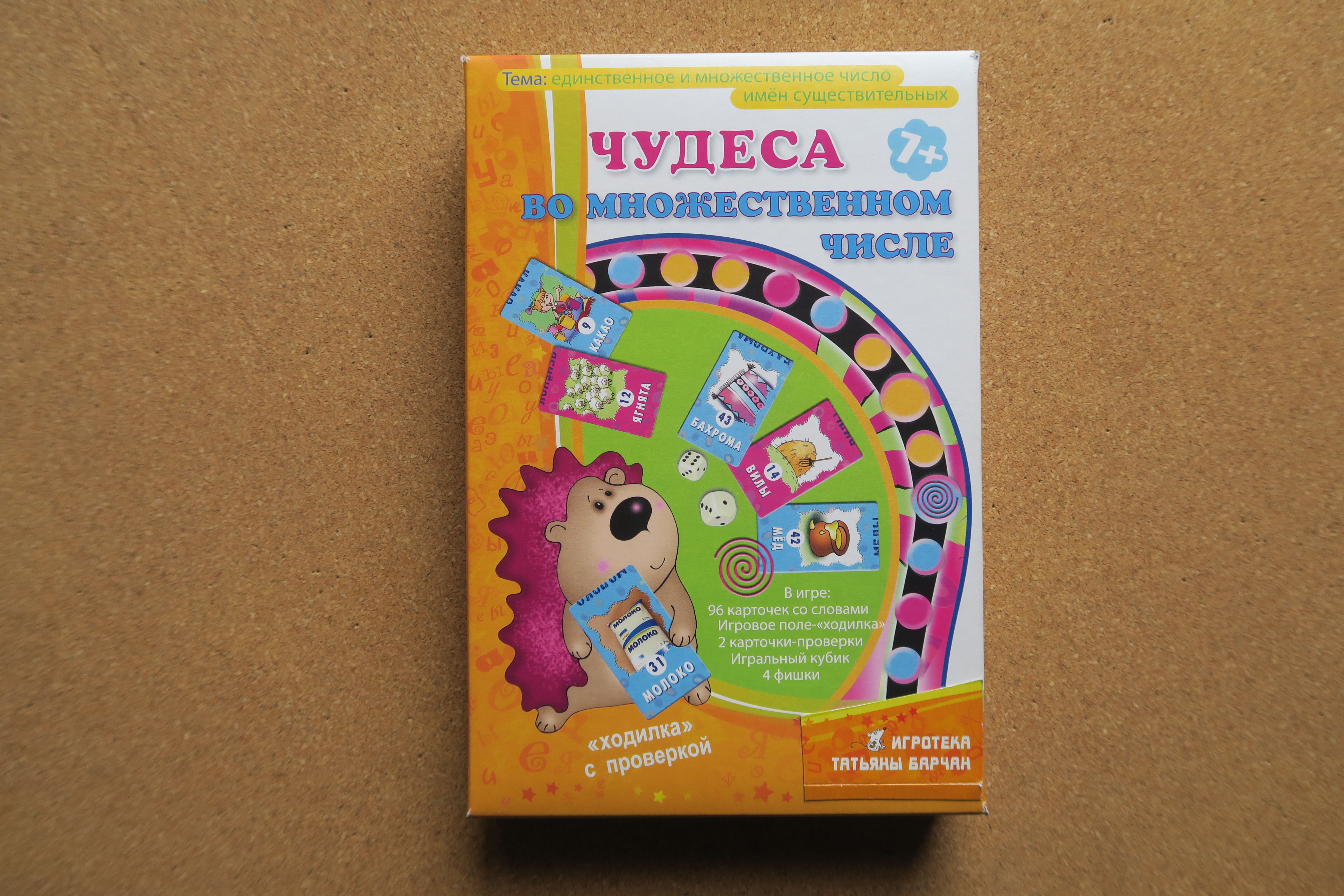 Хочу вам рассказать про одну из наших очень полезных игр от автора Татьяны Барчан "Чудеса во множественном числе". Покупала для игры с дочкой и племянником школьного возраста. Игра как раз рекомендуется детям с 7 лет. Но можно играть и с 6 лет вполне, и с 4-х, если будете за ребенка читать. Это игра-ходилка с проверкой. Ниже расскажу с какой.