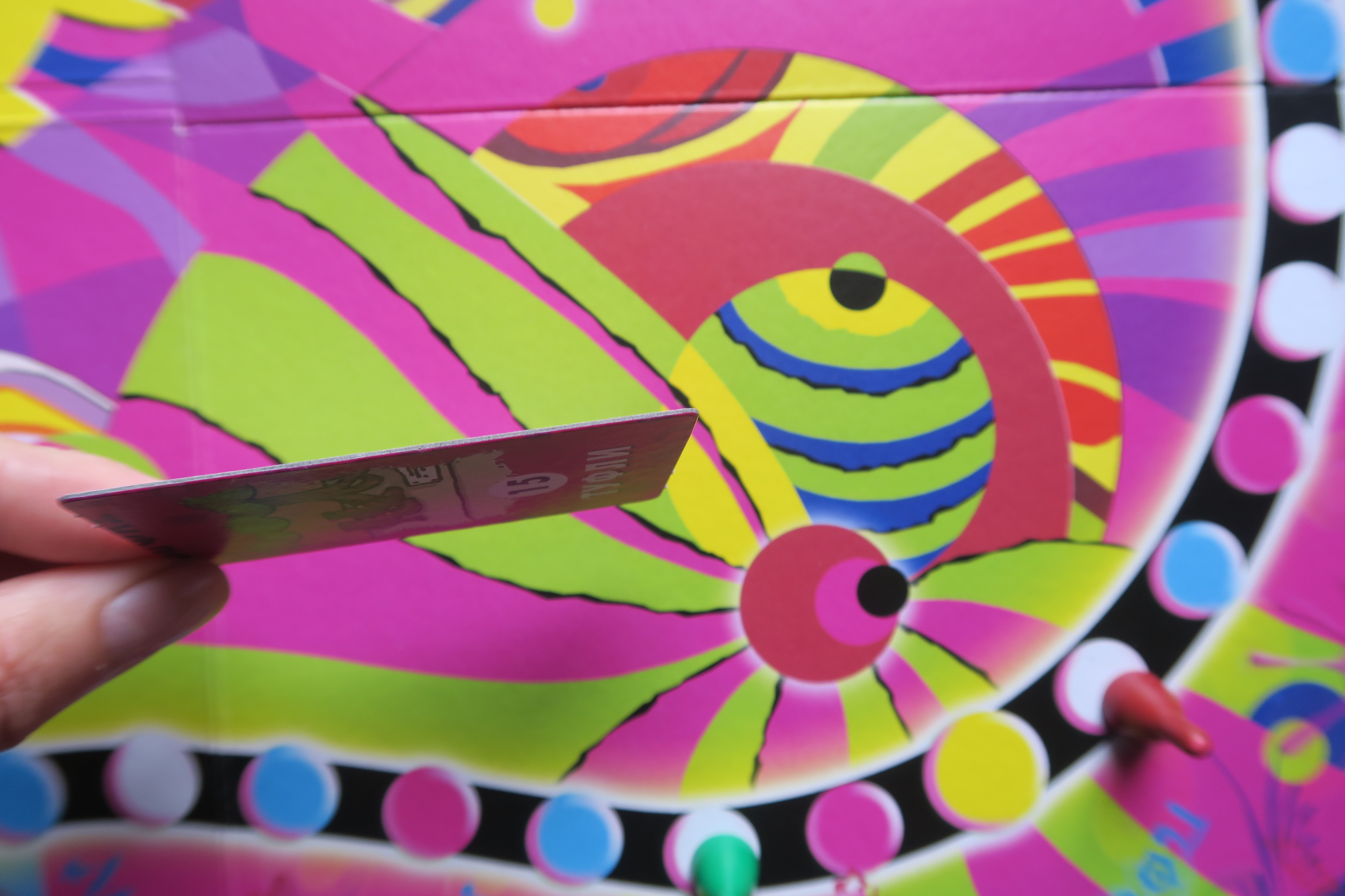 Если фишка попадает на синий кружок, то определяет, как будет звучать слово во множественном числе. Если попадаете на черный кружок, то пропускаете ход. Если на желтый, то выбираете карточку: или синюю, или красную. Если попадаете на цветную спиралью, то берете сразу две карточки: и синюю, и красную. Если из красной или синей стопки попадается карточка "придумай слово", то игрок называет свое слово, или например, которое есть в игре. Игра продолжается, пока не закончатся карточки, а в конце подсчитываются слова у каждого игрока и по их количеству определяется победитель.