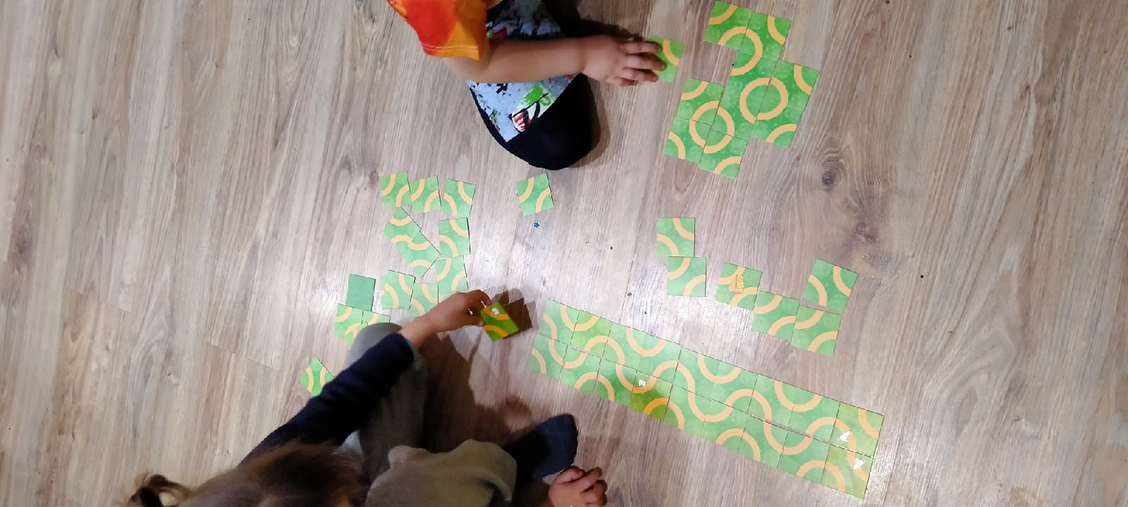 Всего в наборе 60 карточек: 52 карточки с дорожками, 4 карточки с мышками, 2 с кошками и 2 с кусочками ароматного сыра. На квадратных карточках изображена дорожка. Дорожки можно прокладывать так, как вам вздумается: от одной мышки до другой и обратно, можно выскочить из лабиринта на противоположной стороне и даже подразнить рыжую кошку и убежать обратно. Кошка очень опасна, она сидит между двумя дорожками. Домино рассчитано на одного игрока, но так как в коробке два комплекта карточек, то играть можно и вдвоём. Варианты прокладывания дорожек, расположение и количество героев, правила игры ребята могут придумывать самостоятельно. Основная задача: провести мышек по длинным извилистым дорожкам.