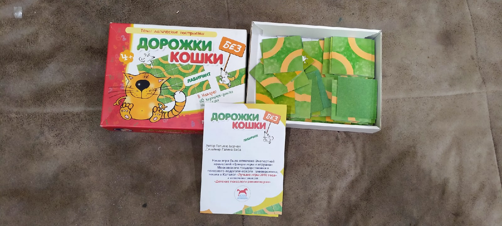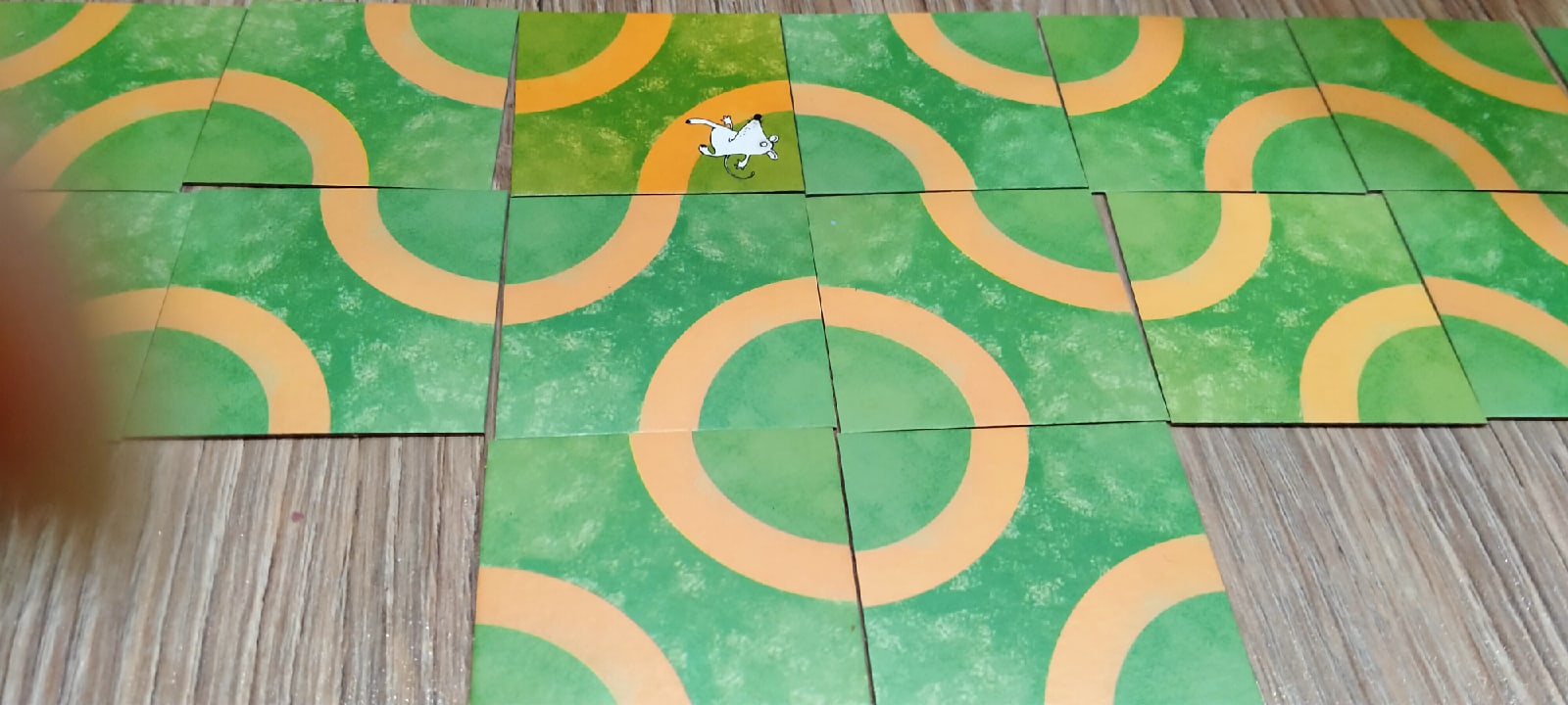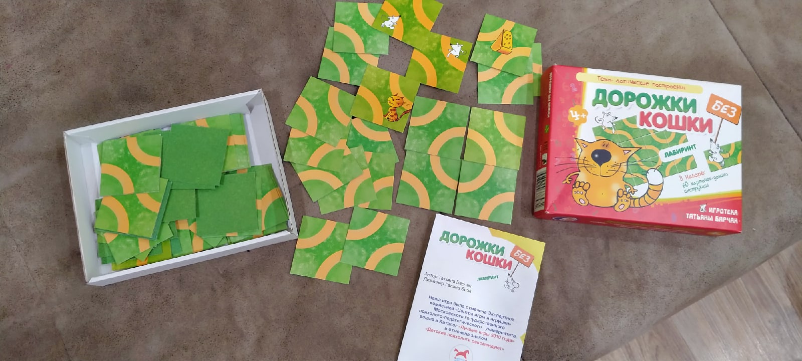 Игра построена по принципу домино. Из квадратных карточек нужно построить запутанные дорожки. 25 карточек раскладываются в 5 рядов по 5 карточек так, чтобы в центре находилась карточка с кошкой, а в противоположных иглах 2 карточки с мышками. Игрок поворачивает карточку на своём месте. В итоге нужно повернуть все карточки таким образом, чтобы на пути мышек не повстречалась злая кошка. Или вместо карточки с кошкой можно использовать картинку сыра, в этом случае каждая мышка должна быстрее другой добраться до заветного лакомства. На первый взгляд, это простая задача, но чтобы её выполнить, нужно приложить немало усилий, терпения, внимания, сосредоточится и набраться смелости.