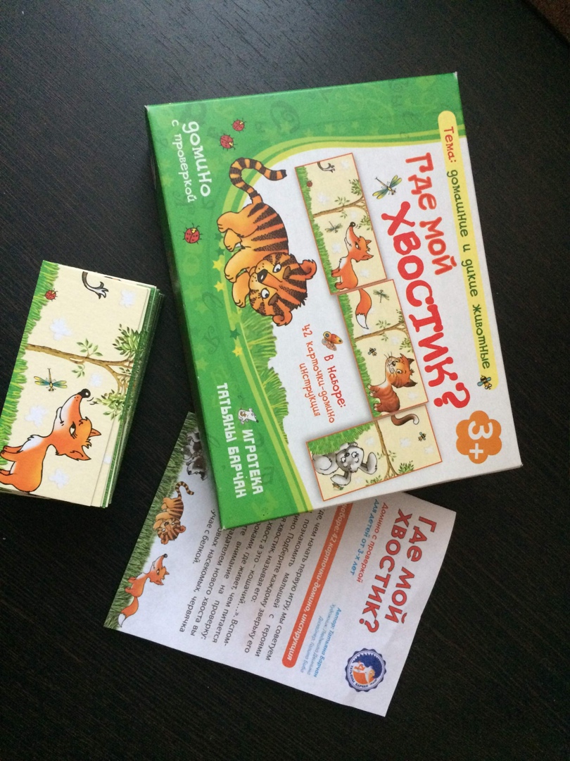 Развивающая игра «Где мой хвостик?» – весёлое домино, которое понравится всем малышам от трёх лет и старше (3+). Вспомним, грустного ослика Иа, который накануне своего дня рождения потерял свой хвост. Эта история имеет счастливое завершение: хвост вернули хозяину и прикрепили на своё место. Наша игра очень похожа на историю из всеми любимого мультика. Дети смогут попытаться найти хвостик лисички, собачки или лошадки. В итоге все зверушки должны обрести свои хвостики. А для этого маленькие непоседы должны проявить все свои знания, интуицию и сообразительность. В яркой небольшой коробочке 42 карточки с картинками и инструкция с правилами. Карточки выполнены из плотного картона, размер каждой карточки 10 х 4 см.