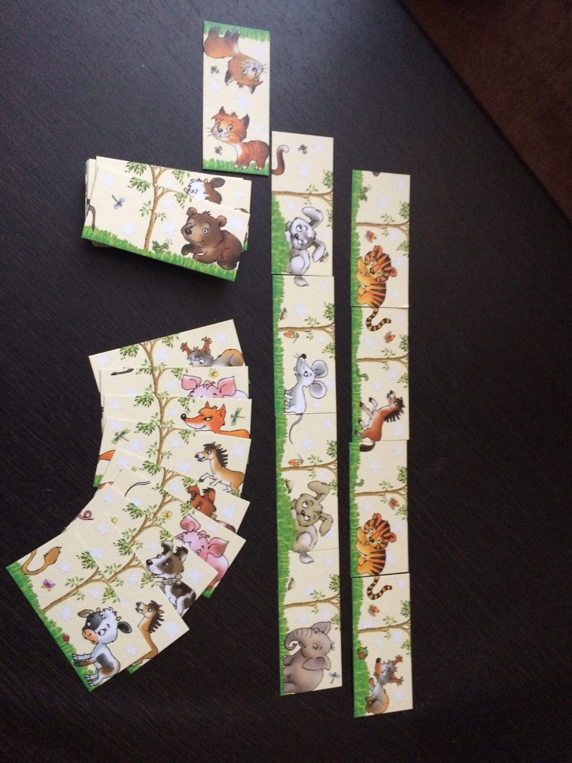 Помимо основной игры, воспользовавшись рекомендациями производителя, мы использовали карточки-доминошки для игры в "Лото", для сбора команд (самые быстрые, самые большие), а также как дидактический материал для изучения внешнего вида животных. Вместе с карапузом мы придумывали разные истории о кошке и собаке, слоне и тигренке, лошадке и теленке. Домино сыну понравилось, время провели с пользой, приобрели новые навыки!