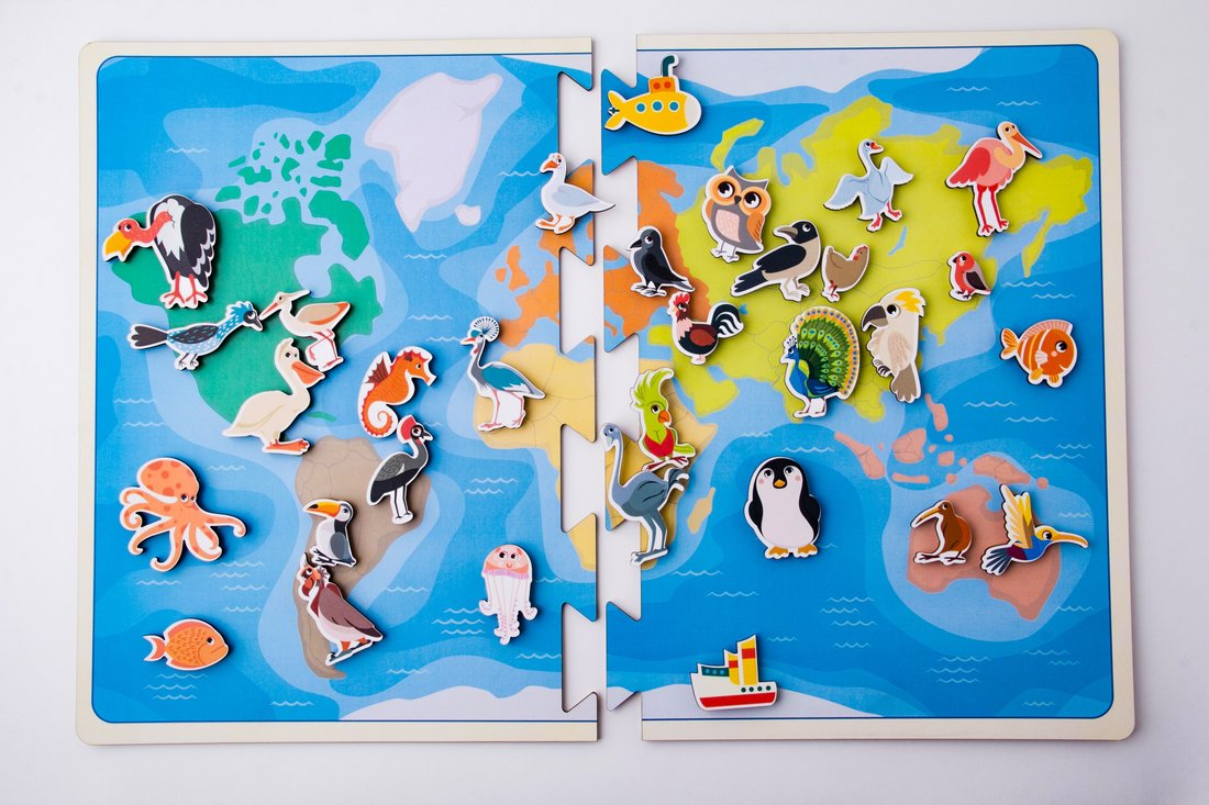 В процессе систематических занятий с картой мальчики и девочки смогут ориентироваться на физической карте мира в будущем, находить стороны света и экватор и определять соответствующий географическому положению климат. Также ребята дошкольного и младшего школьного возраста смогут пополнить словарный запас новыми словами, развить речь, мелкую моторику рук и пальцев, мышление, внимание и память.
