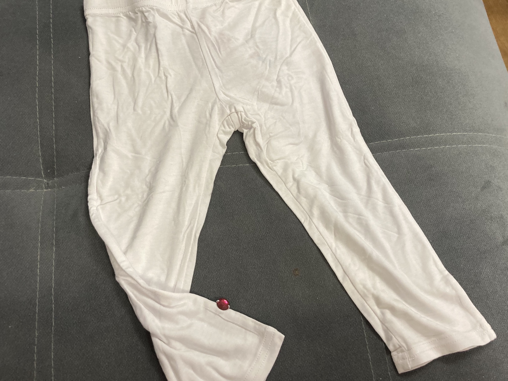 Он очень приятный на ощупь, ткань струится в руках. Леггинсы достигают длины чуть ниже колена, если брать во внимание рост примерно 110 сантиметров.