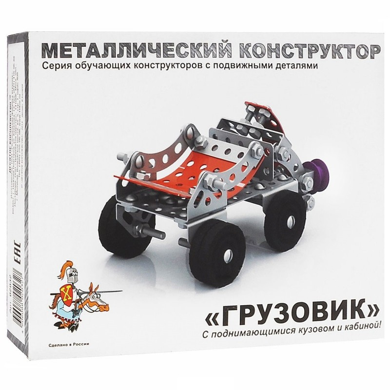 «Грузовик» включает детали в виде пластин разной конфигурации, уголков, пластиковых элементов, крепежа разного размера (болты и гайки). Машина в сборе представляет собой функциональную модель с вращающимися колёсами и механизмом поднятия кузова.