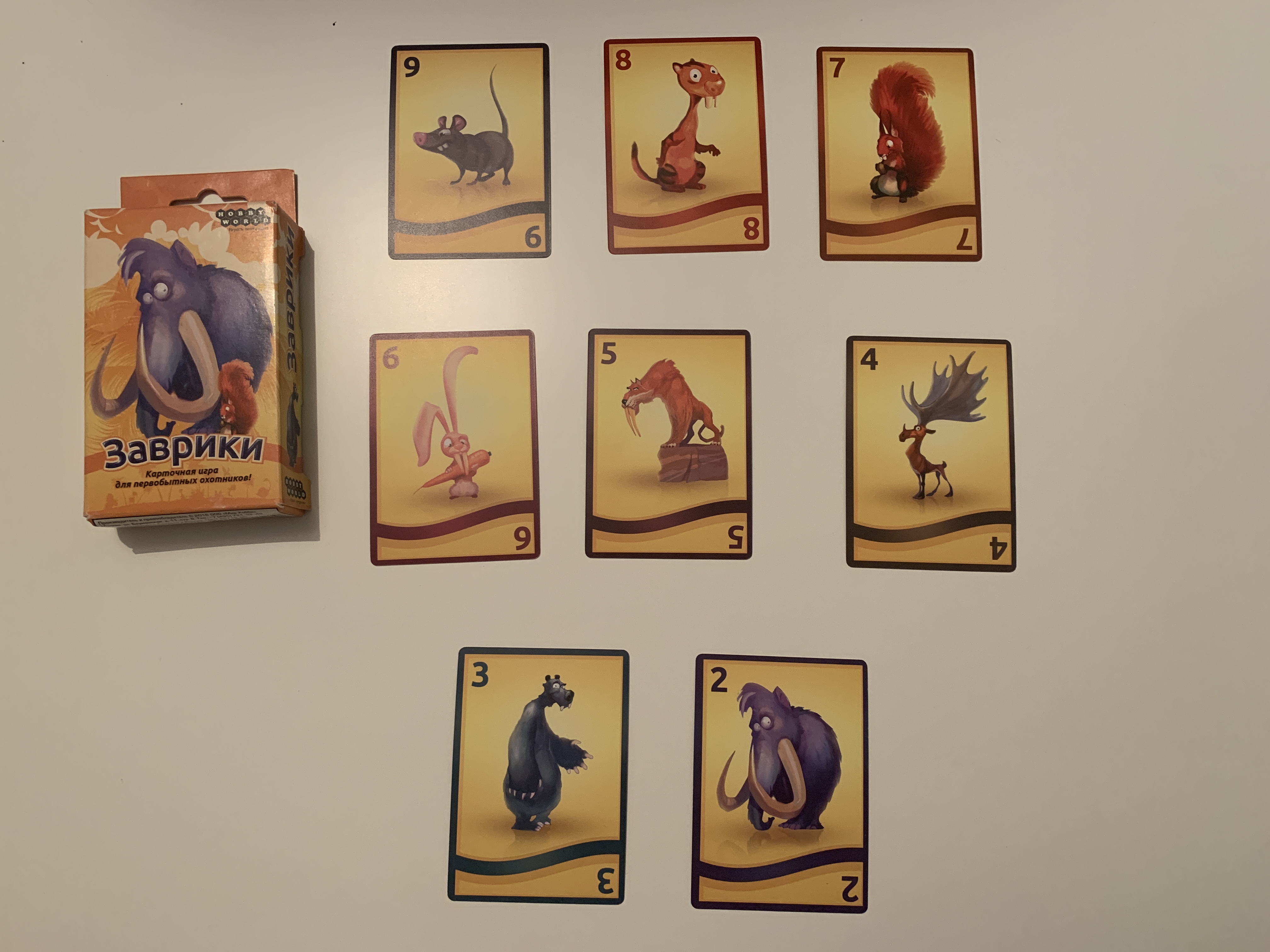 Когда охотник забирает стадо, то следующий за ним игрок выкладывает свои карточки и называет своё стадо, которое он обнаружил. Если у игрока на руках скопились все животные одного вида, он может их скинуть и сообщить о вымирании данного вида зверей (на каждой карточке вида указана цифра – число животных данного вида), а вот завриков сбросить нельзя. Если охотник, сказав "Их больше", выложил все свои карточки, то следующий игрок обязан его проверить. Если в этом случае ему повезло и он не получает обратно карточки, то становится победителем игры. Другой вариант победы – если игрок скинул всех вымерших животных и остался без карточек.