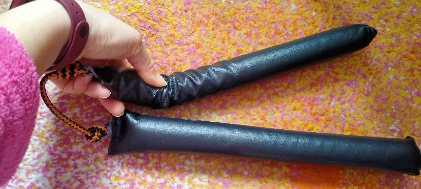 Нунчаки выглядят как две палки (длина каждой части 30 см), соединённые между собой плетёной веревкой, концы которой закреплены на верхней части каждой боевой секции. Длину верёвки можно регулировать. Вес игрушки 60 гр. Оружие безопасно, за счёт мягких элементов дети не нанесут травмы ни себе, ни окружающим. В таком варианте ими можно пользоваться дома и на улице, их можно смело вращать, проделывая разные упражнения, предусмотренные для этого спортивного снаряда. Занимаясь с нунчаками, ребята развивают ловкость, внимание, реакцию, координацию, приобретают новые навыки, тренируют моторику, знакомятся с историей. Игрушка может стать частью соревновательного процесса, наглядным пособием для изучения снаряда, частью снаряжения. Отлично подойдёт в качестве подарка мальчику на любой праздник.