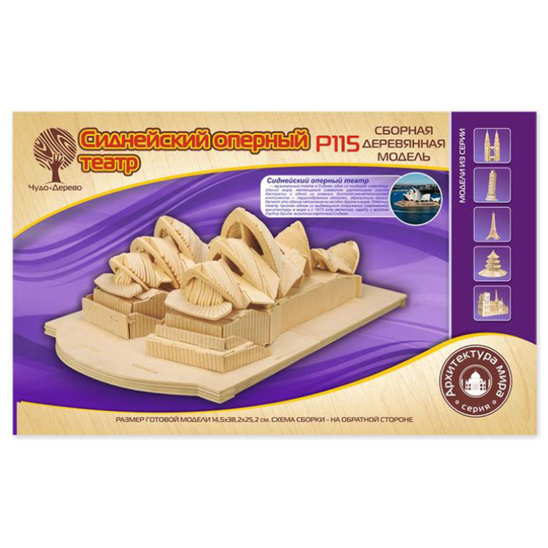 Сборная деревянная модель «Сиднейский оперный театр» - это конструктор для взрослых и детей, который позволит создать точную копию знаменитого здания в Сиднее. Оно было построено в 1957 году и стало символом города.