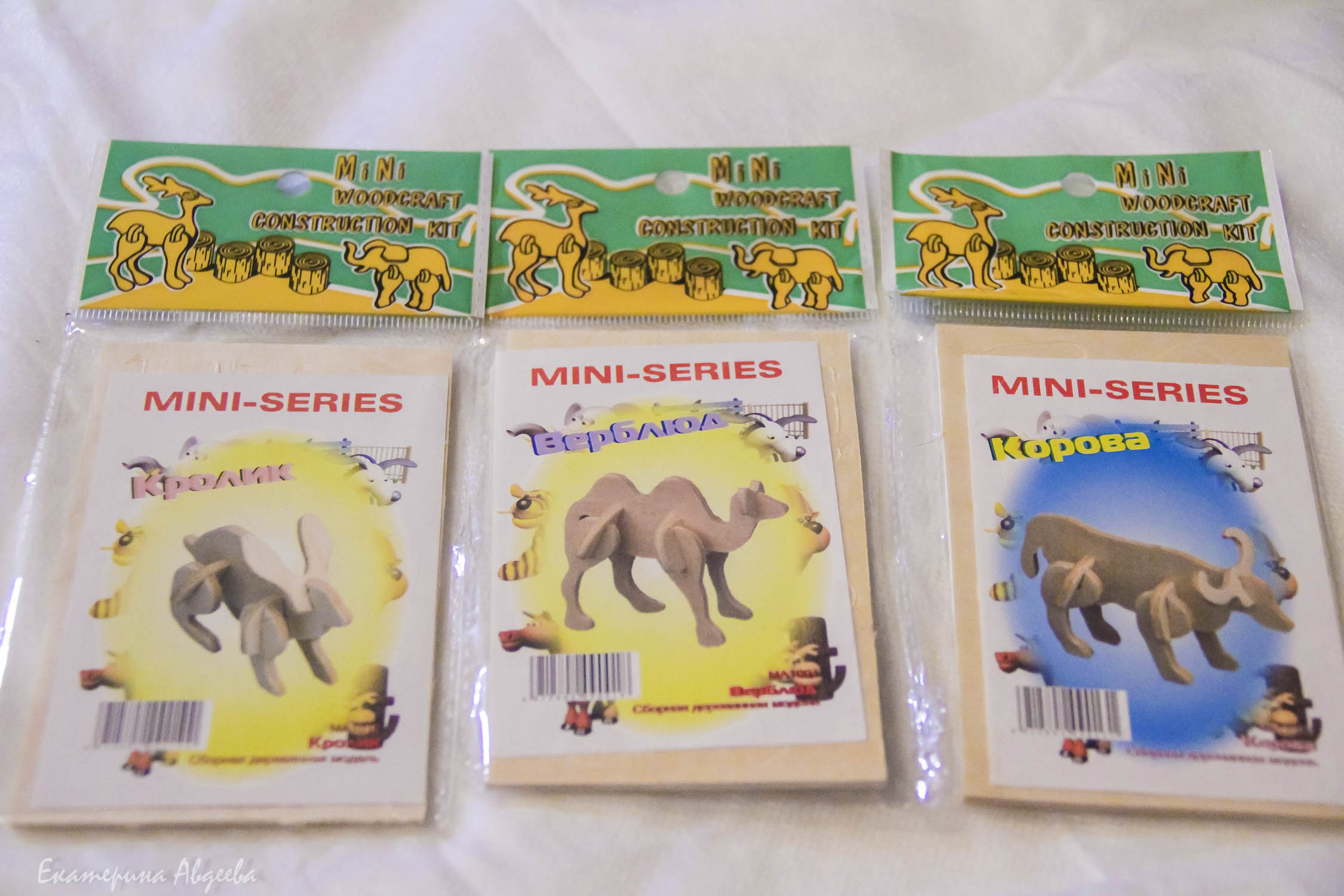 Российский производитель «Чудо-Дерево» предлагает для детей в возрасте от трёх лет и старше (3+) сборные деревянные модели из серии «Животные» мини в ассортименте.